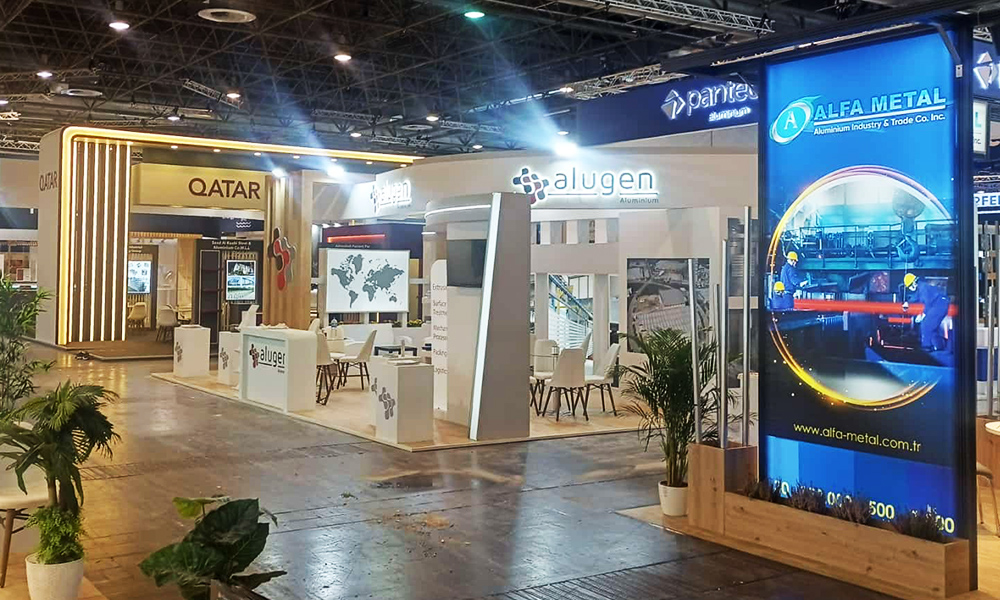 This design, which we made for Alugen Aluminum at the 2024 Aluminum Düsseldorf fairground, is a customizable, disposable wooden custom-made exhibition stand. MDF was selected as the material for the stand construction and painted in the company's corporate colors, and the signage selection was applied as light box letters.